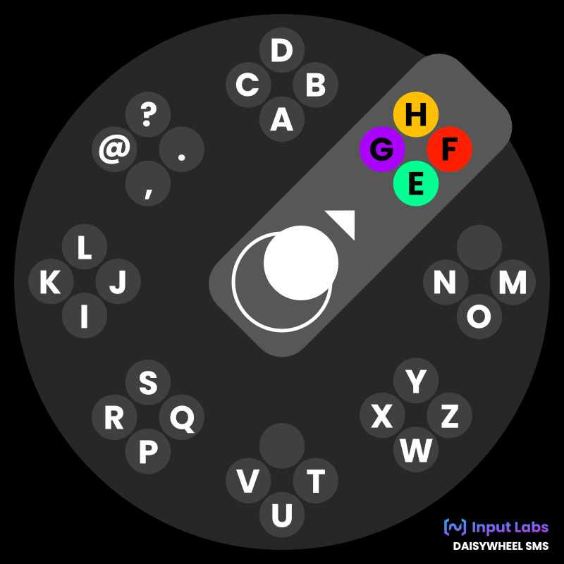 - Thumbstick direction (8 possible directions) pre-selects a group of 4 characters.