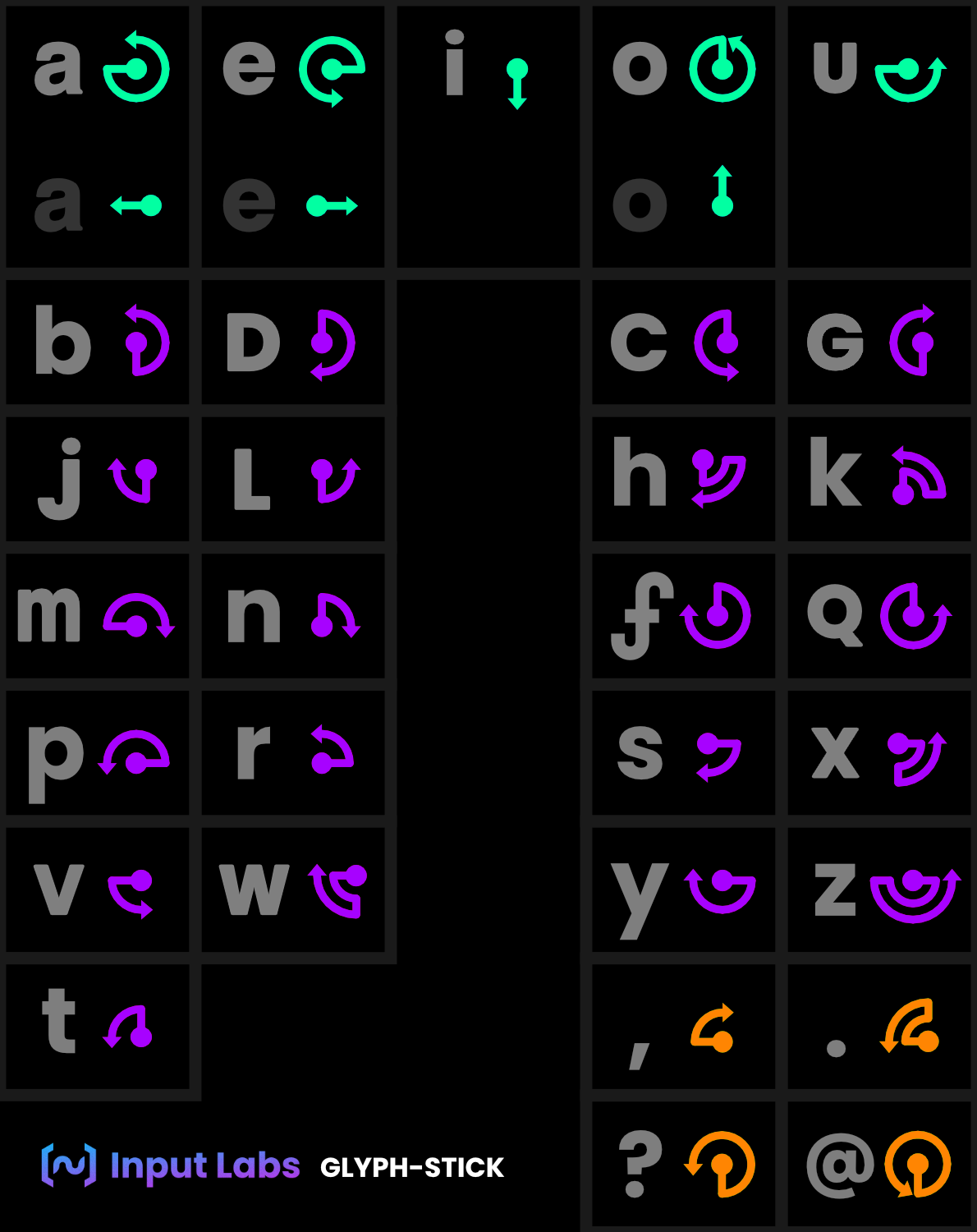 - Moving the thumbstick away from the center, then performing one of the glyphs, and then returning the thumbstick to the center.