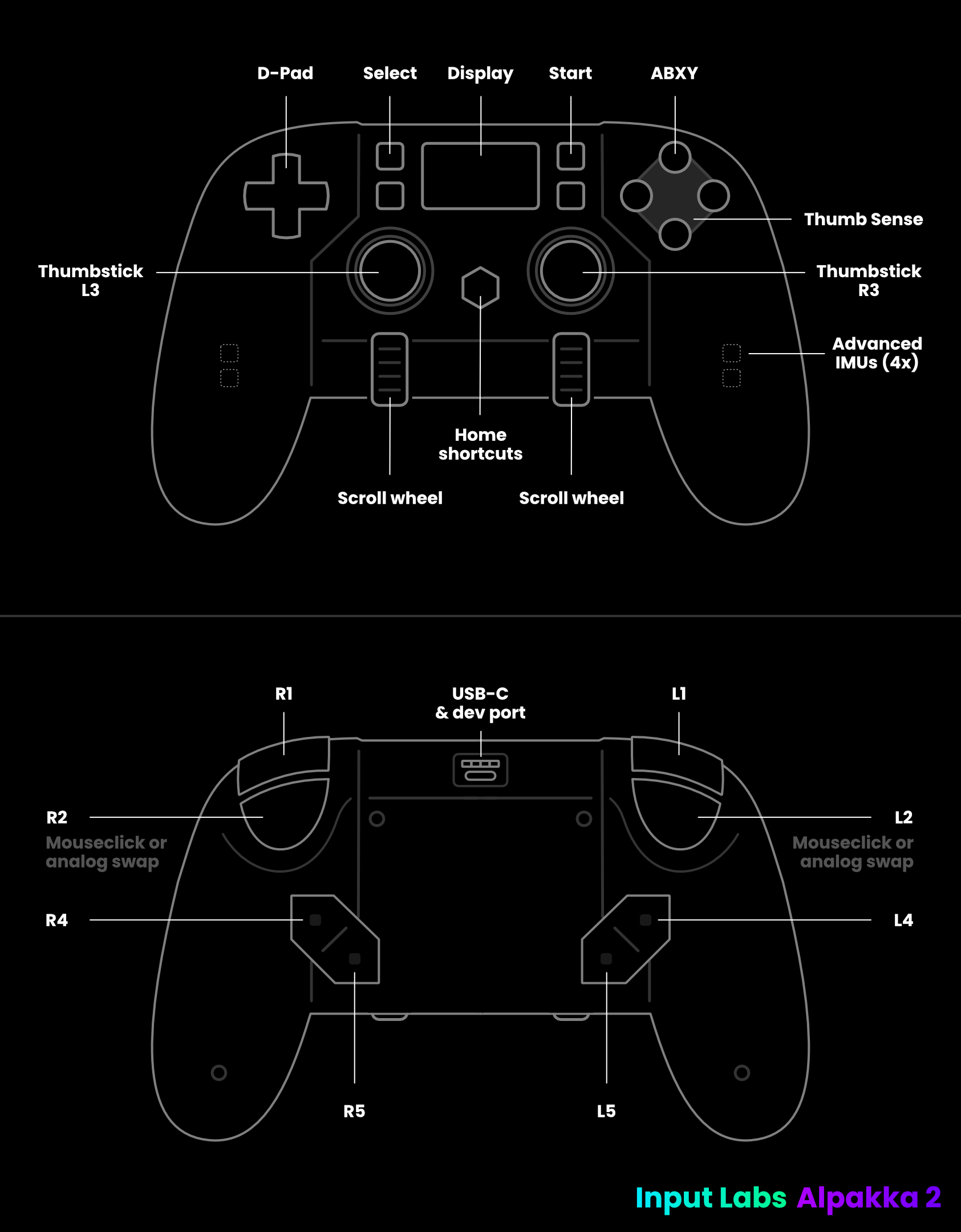 - 4 Face buttons (ABXY) with Thumb-sense touch surface.