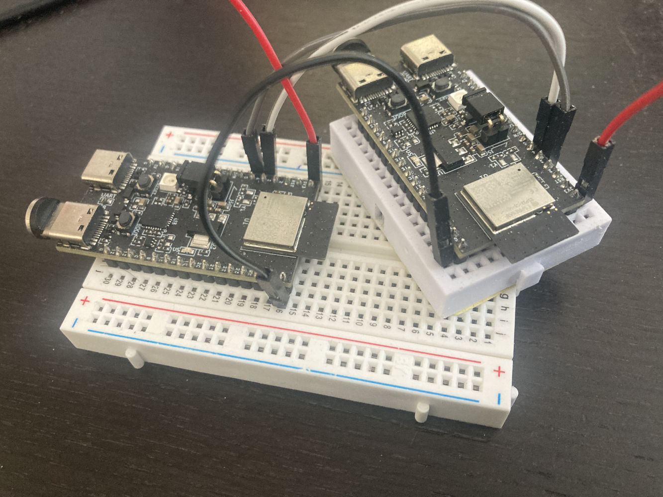 We evaluated ESP C-series (RISC-V) Mini modules, using the ESP-NOW protocol, and measuring latency, jitter, range and connection stability in the same way we did with our prototypes.